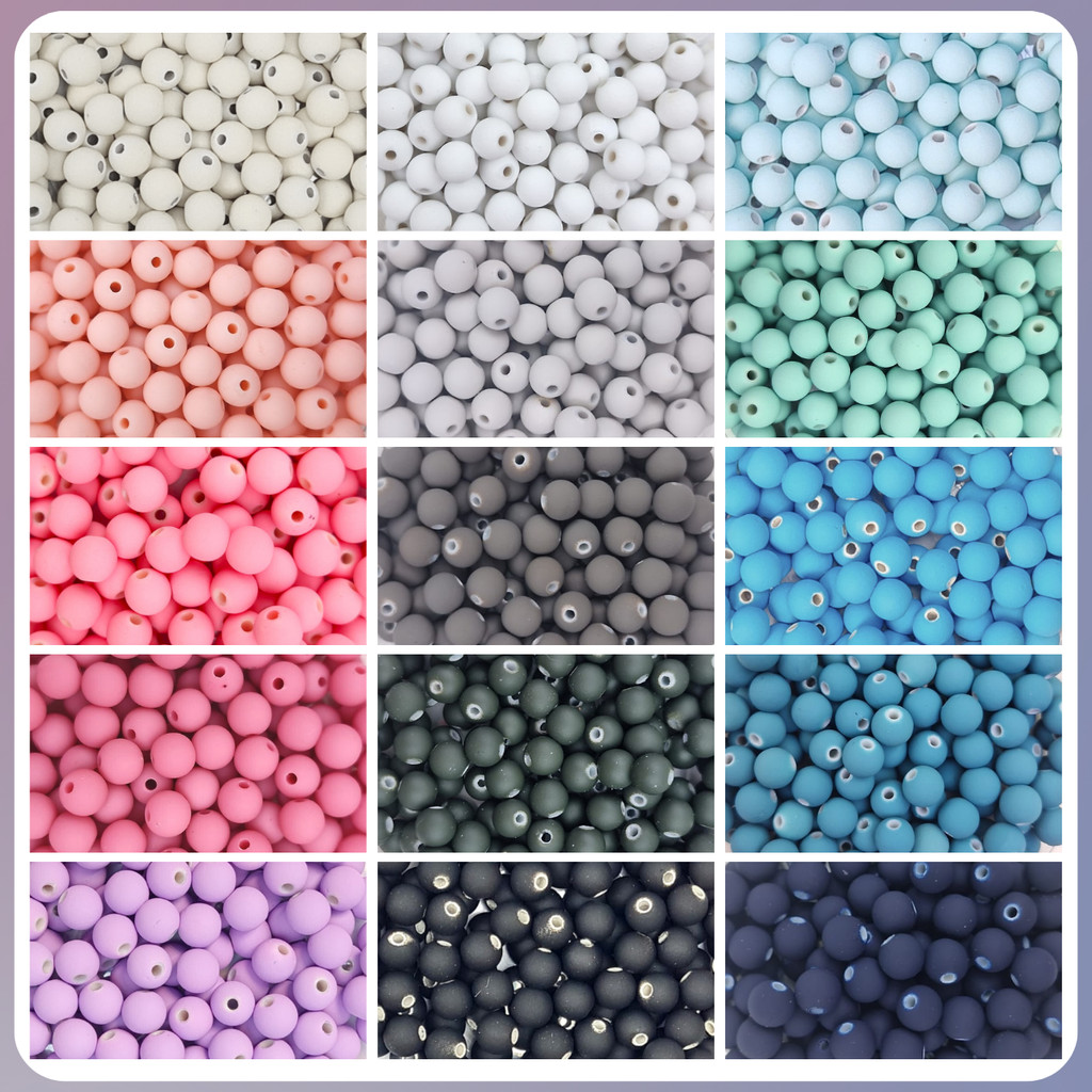 Miçanga Bola Emborrachada Fosca 8mm Conta Passante Colar Pulseira Cores