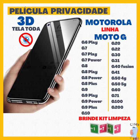 Película 3D Privativa Motorola Moto Privacidade Anti Espião Espionagem Vidro G6 Play G7 G7 Play G7 Power G8 G8 Play G8 Power G9 G9 Play G10 G20 G22 G30 G31 G40 Fusion G41 G50 5G G52 G60 G71 G82 G100