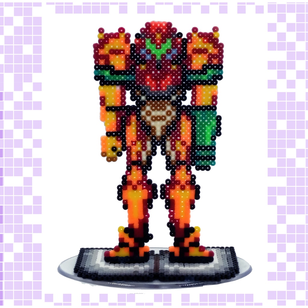 Super Metroid Samus Figura Pixel Art Bead Perler Acompanha Base