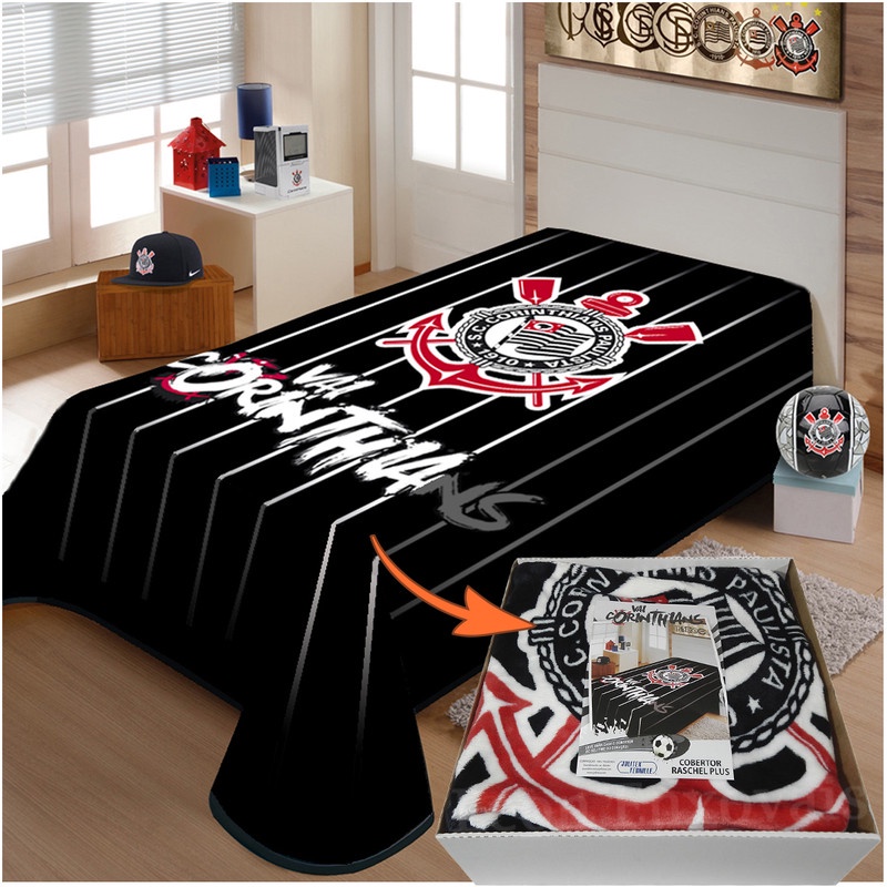 Cobertor Corinthians Oficial Jolitex Raschel Solteiro 2x1,5m