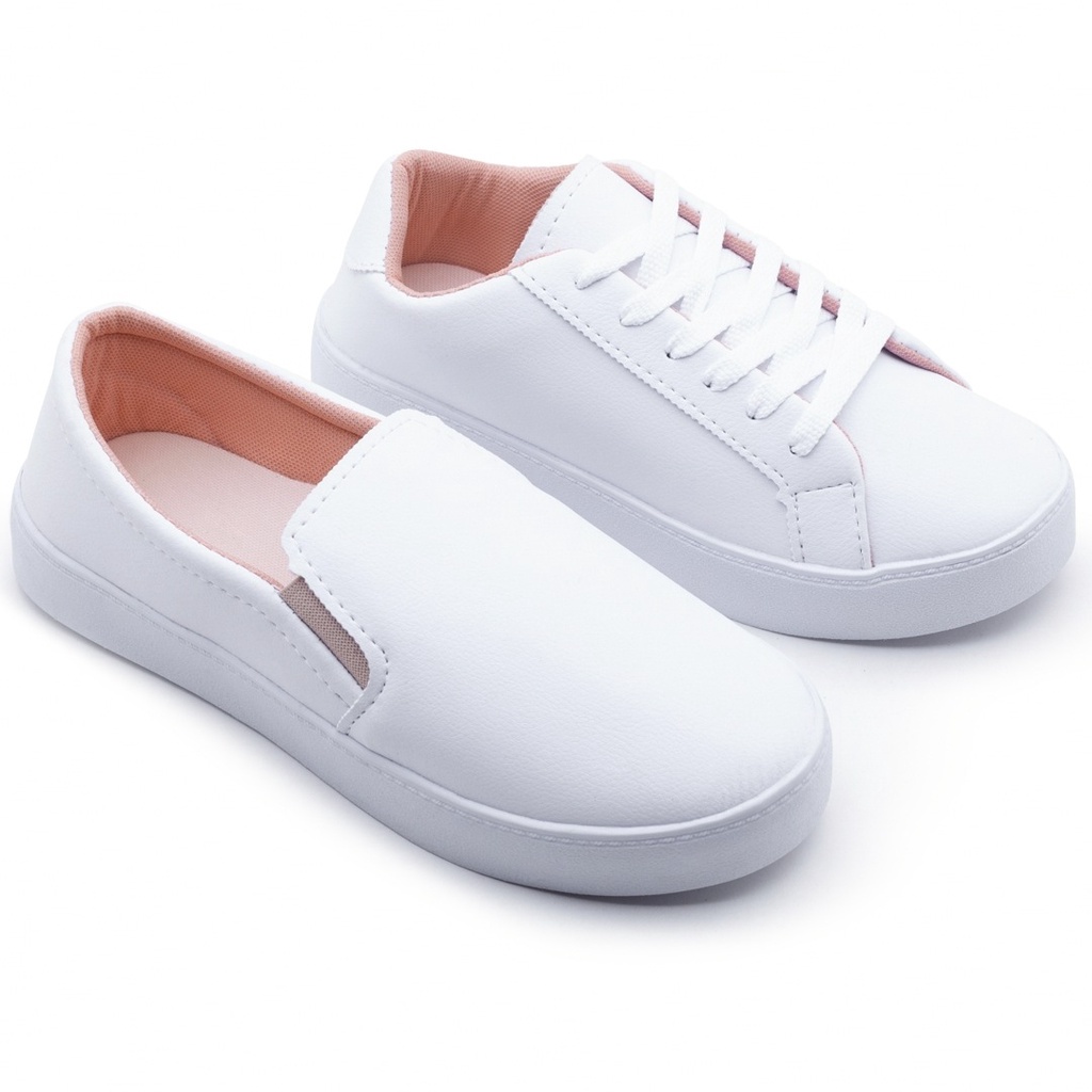Kit 2 pares slip on feminino branco e tênis branco feminino calce fácil casual