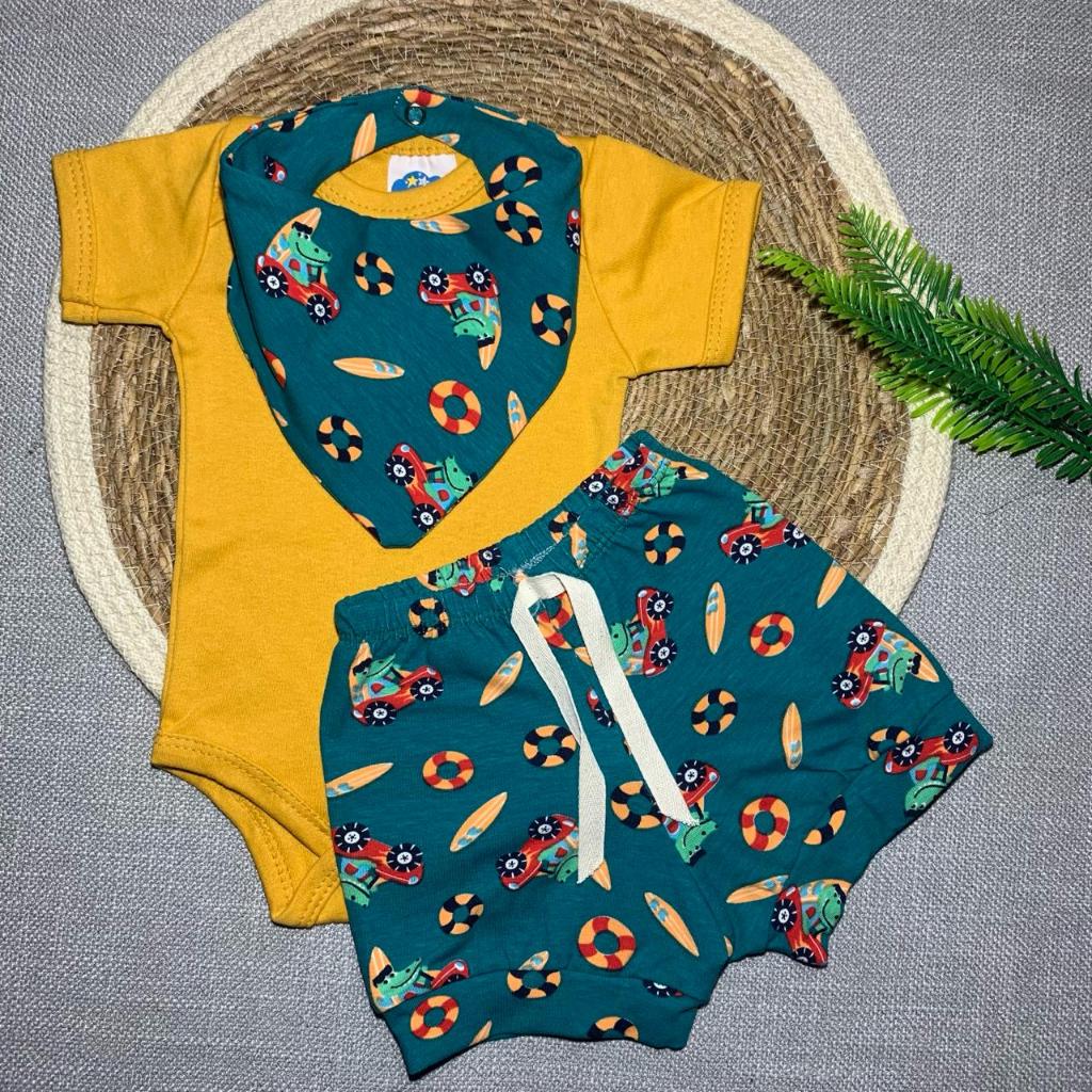 Conjunto Bebe Verão Menino Short, Body E Babador Bandana Roupinha de Bebê
