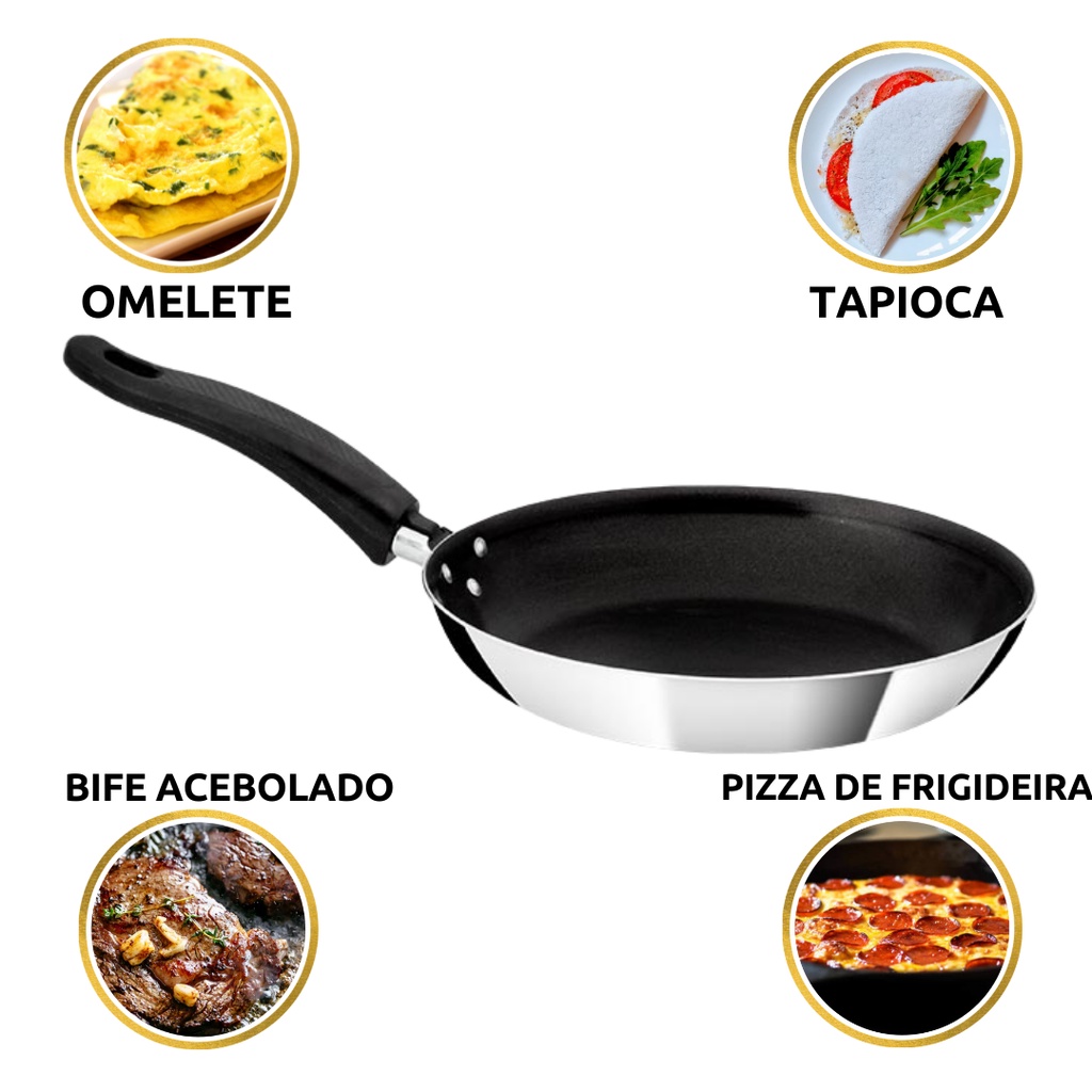 Frigideira Francesa Antiaderente N 22 Teflon Alumínio Extra Fino Borda Reforçada Omelete Tapioca Resistente Profissional Leve Fácil Manuseio e Higienização