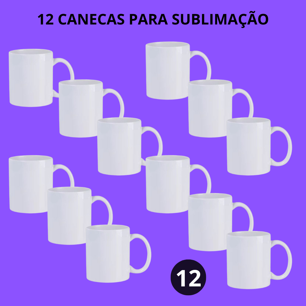 Caneca de Cerâmica para Sublimação Branca Importada AAA - 12 unidades