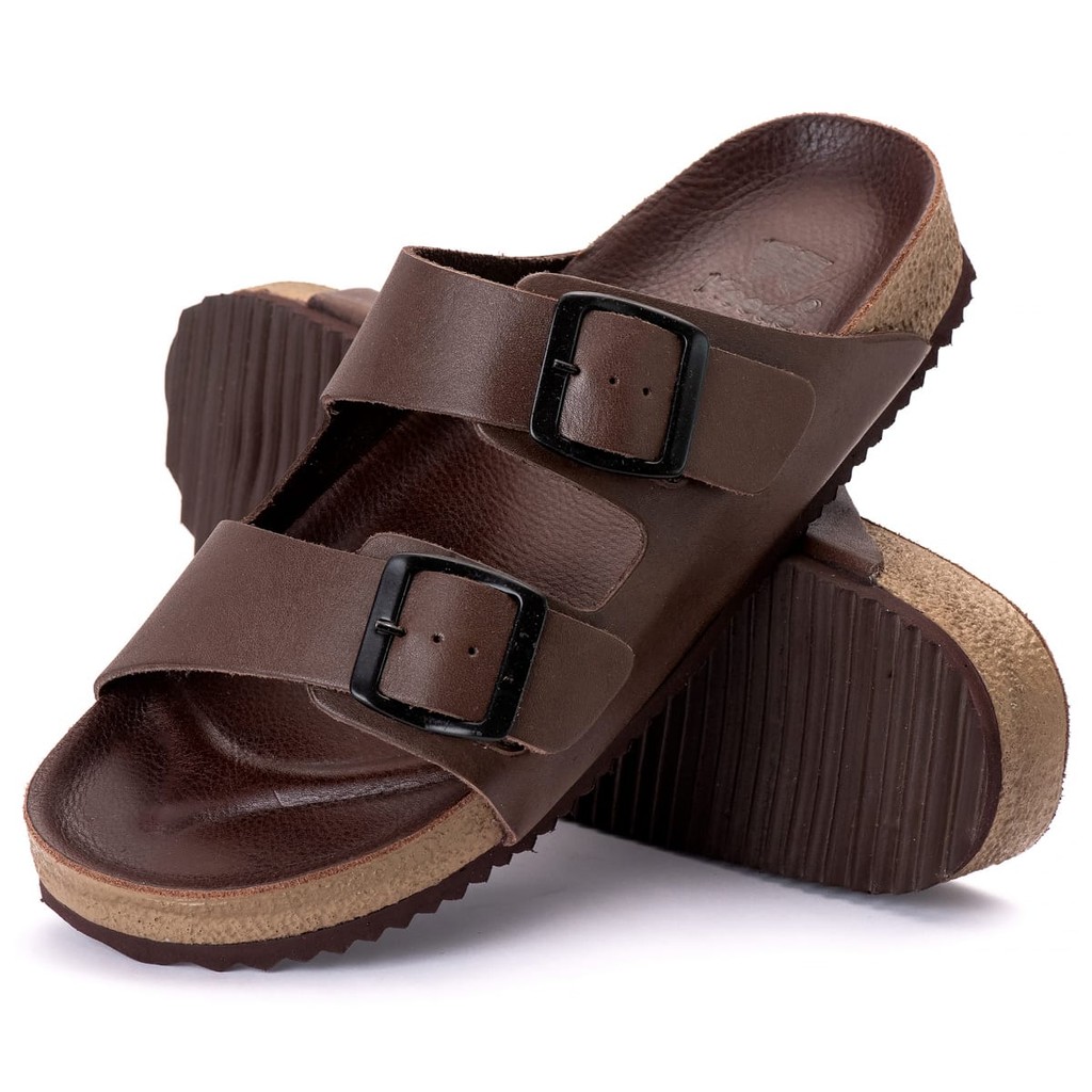 Sandália Birken Masculino Em Couro Legitimo Chinelo Confortável Premium Slide Keeus