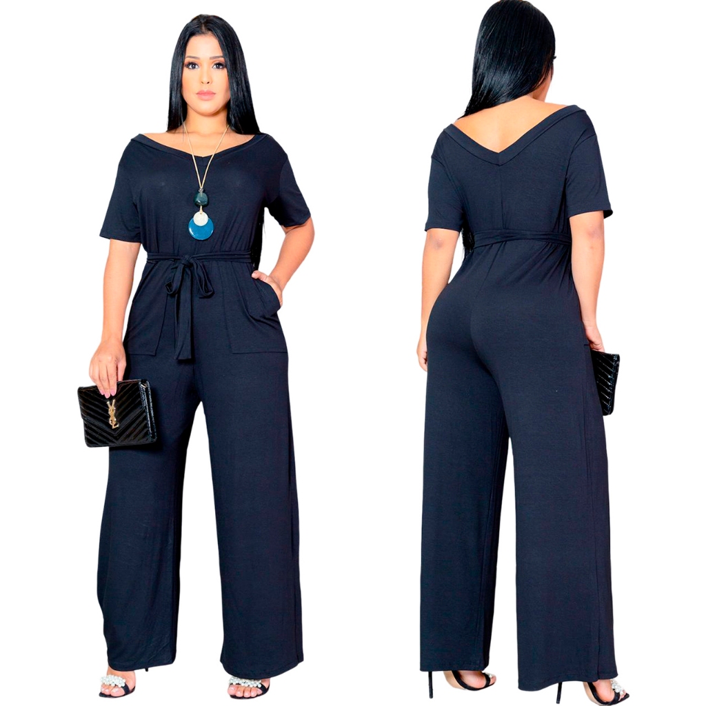 Macacão Saruel Pantalona com Cinto Manga Curta Viscolycra Soltinho Moda Feminina 38 a 46