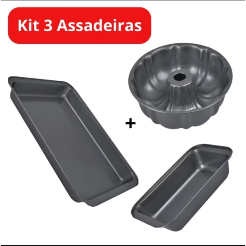 Kit 3 assadeiras formas antiaderente, bolo e pão!!