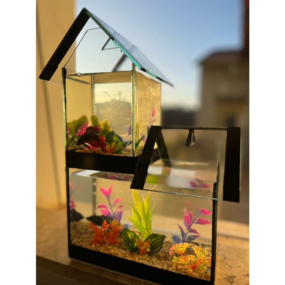 Aquário Beteira Para Peixe Beta Casinha Chalé Dupla