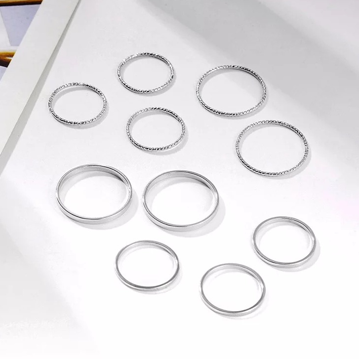 Kit 10 Anéis Prateado Conjunto Aliança Fina Minimalista C2201