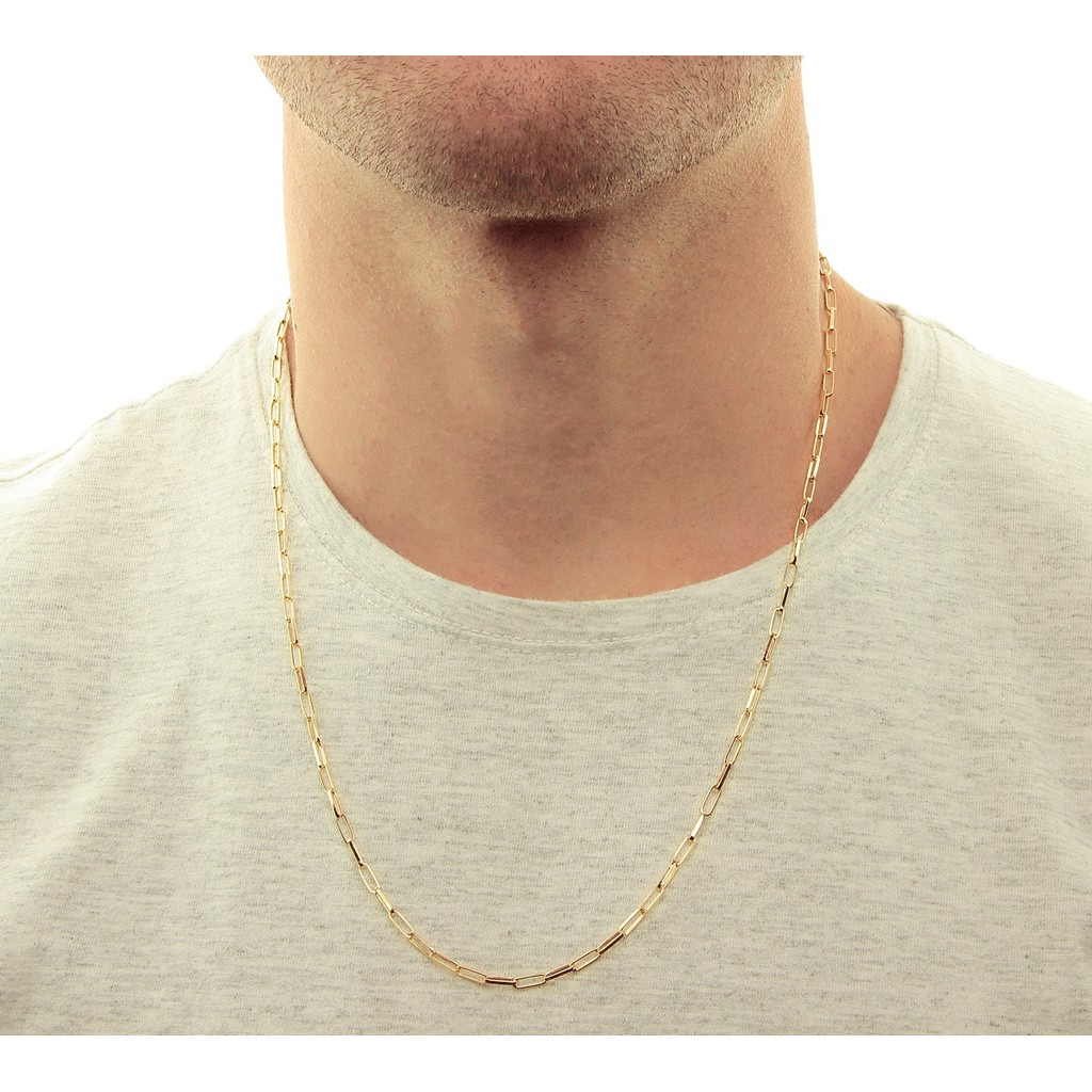 Cordão Corrente Cadeado Cartier Masculino 60cm 3mm Banhado a Ouro 18k Ouro18k