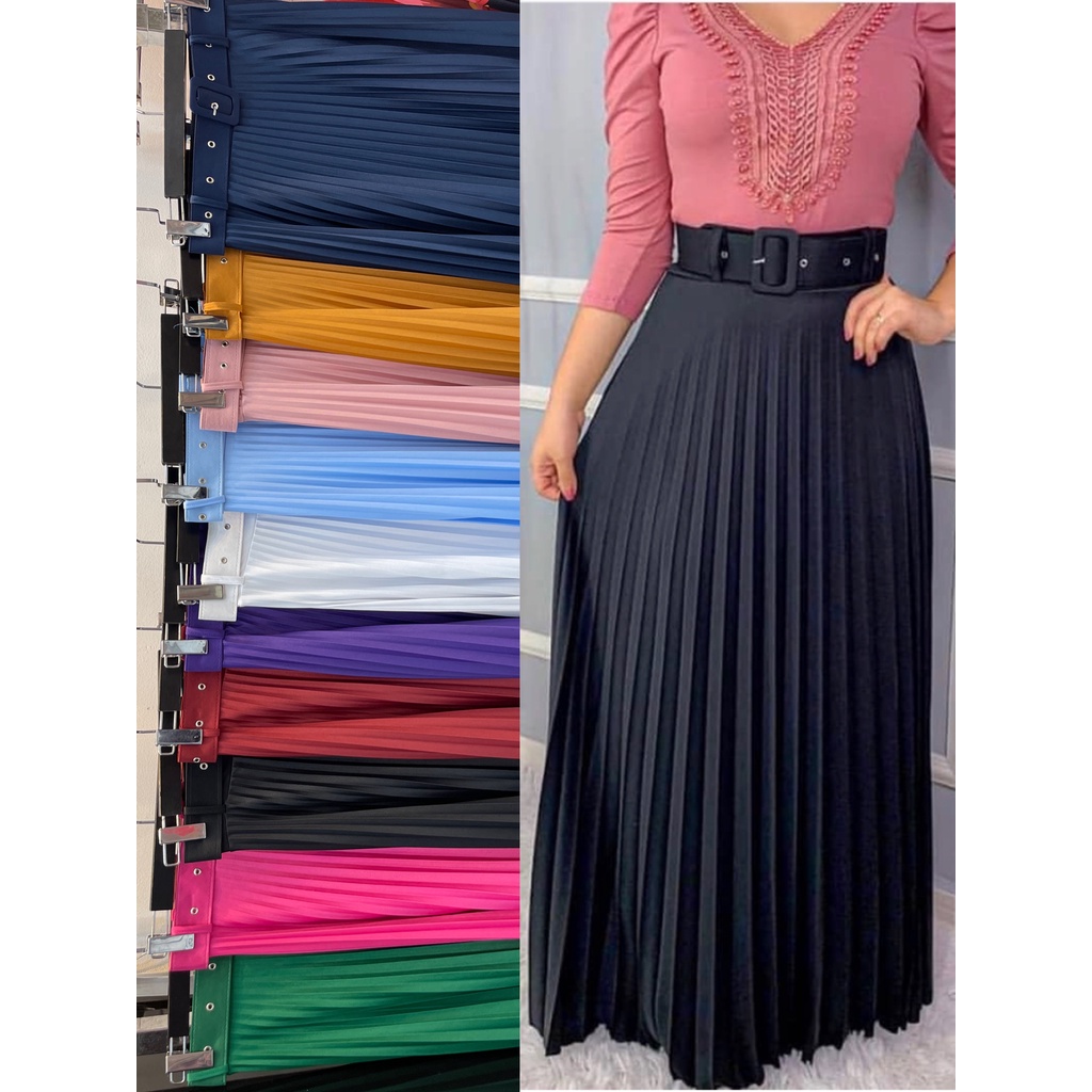 saia LONGA Plissada com Cinto Fivela Forrada cod 022