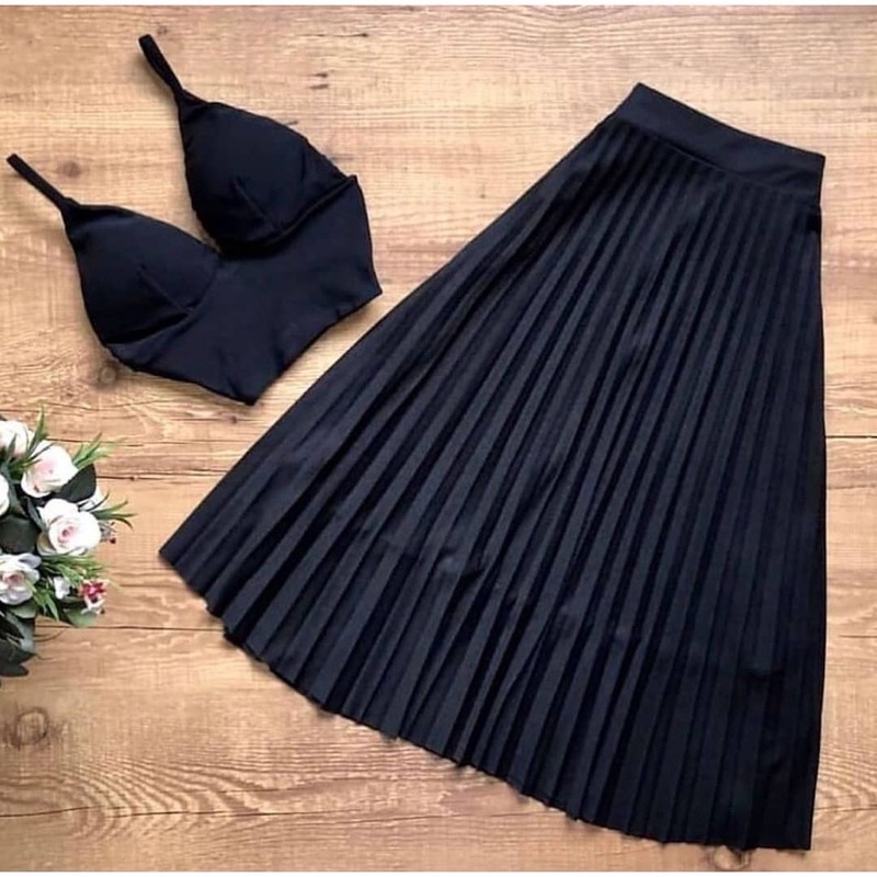 Saia Elanca Plissada Midi Social Moda Evangélica Feminina Top