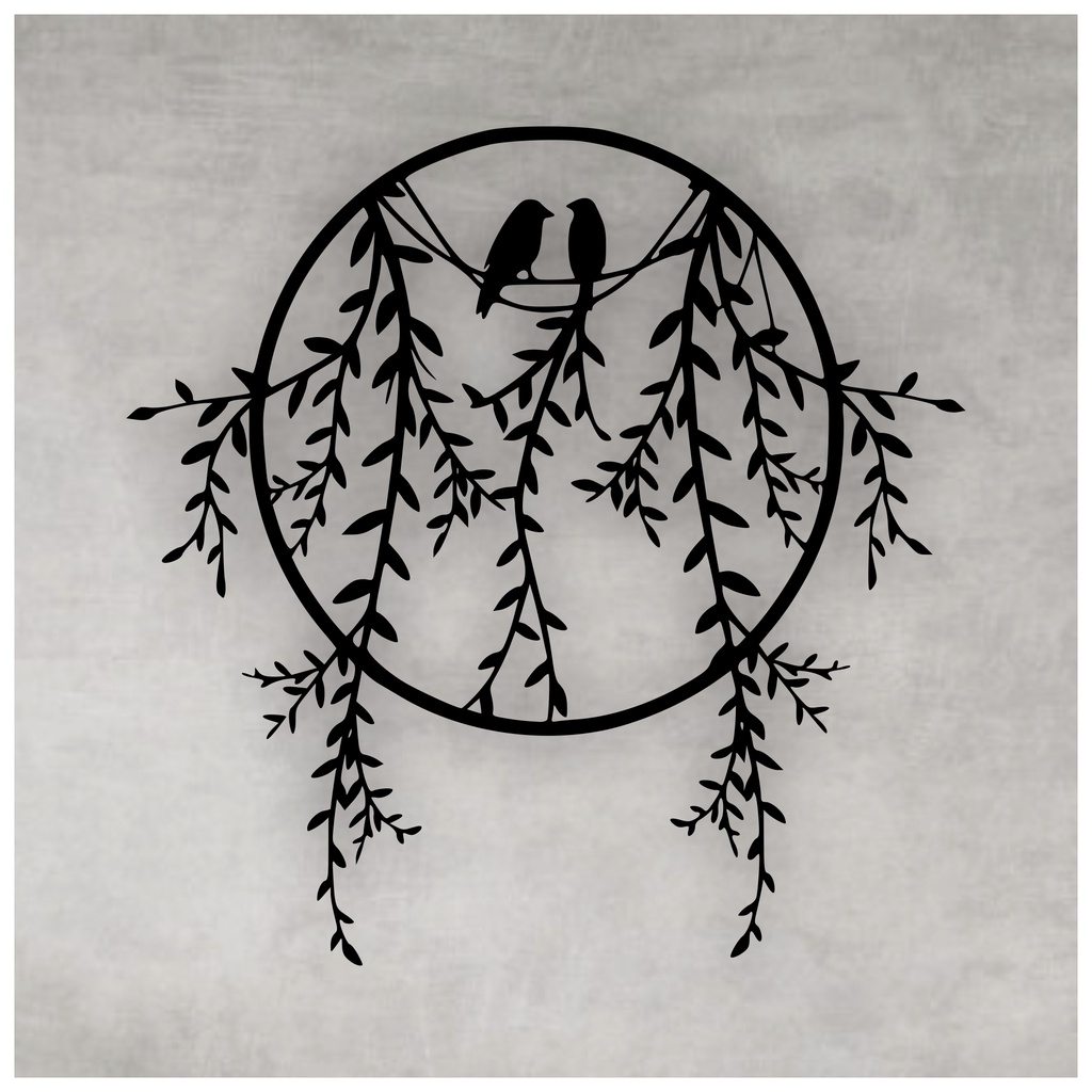 Quadro Decorativo Vazado Pássaros Ramos MDF Escultura de Parede MDF Preto