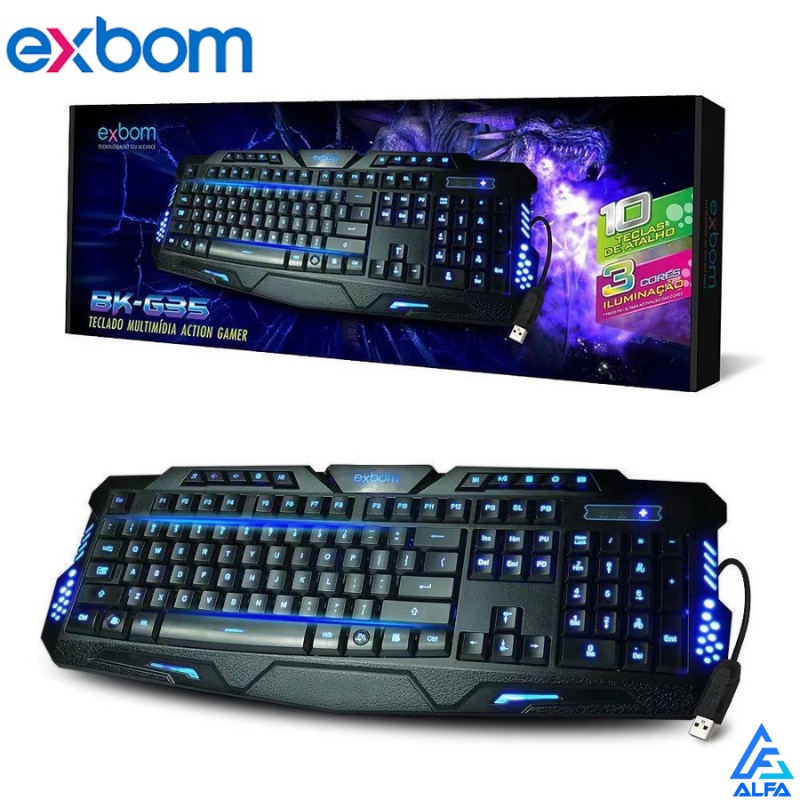 Teclado Gamer com fio BK-G35 USB com tecla de atalho e 3 cores iluminação ABNT - Padrão Brasileiro