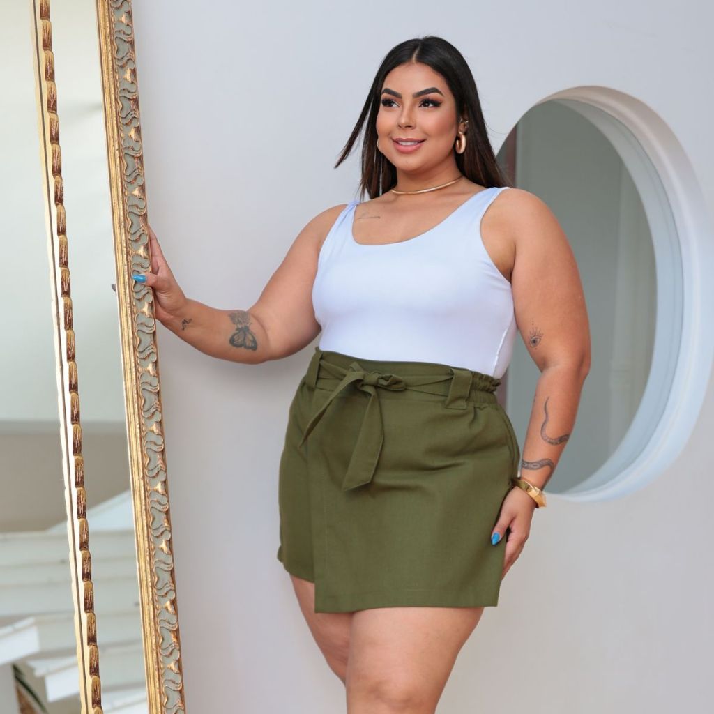 Short Saia Alfaiataria Social Com cinto Plus Size Envio Rápido