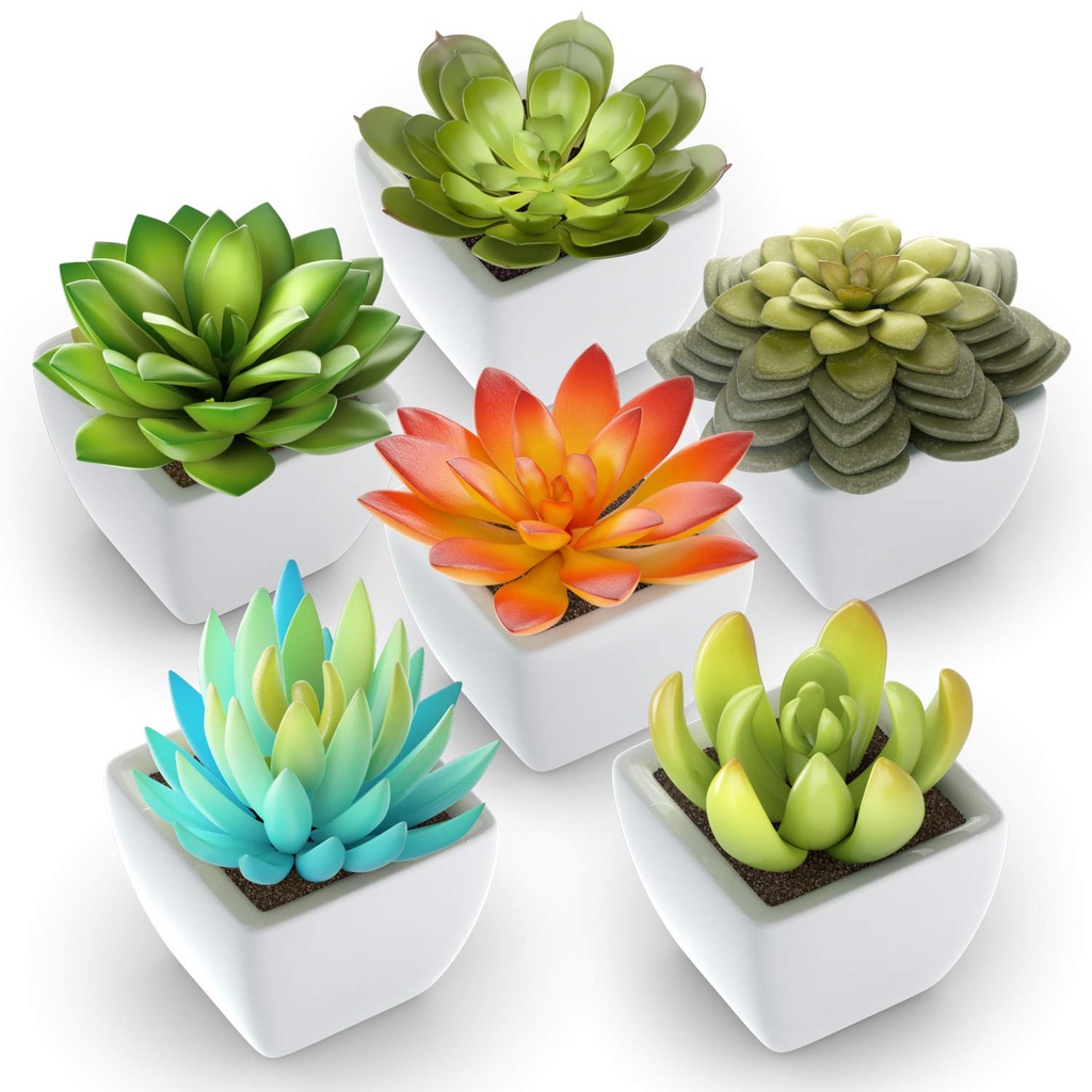 Kit 6 Suculentas E Cactus Verdes Artificiais Realistas Decoração + 6 Vasinhos PARA MONTAR