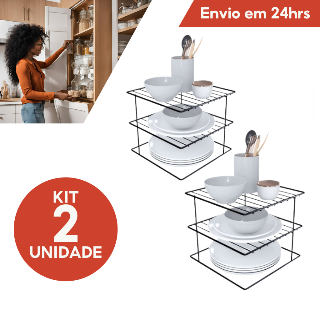 Kit 3 Organizador Suporte de Armário Cozinha Prateleira Pratos Copos Aramado