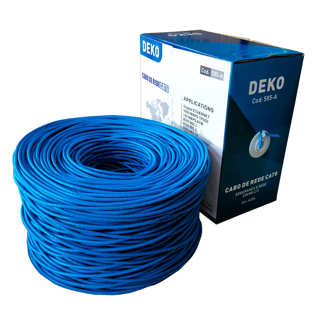 CABO DE REDE CAT6 UTP CCA 23AWG AZUL MARCA DEKO - LANCE C/100 METROS + 10 RJ45 CAT6 C/CAPAS