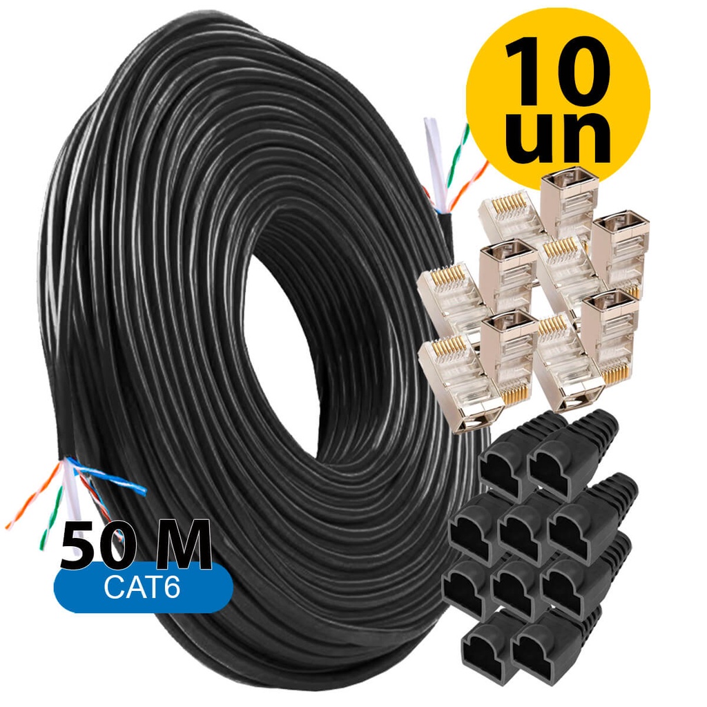 Cabo De Rede Cat6 Gigabit Utp 50 Metros + Rj45-blindado