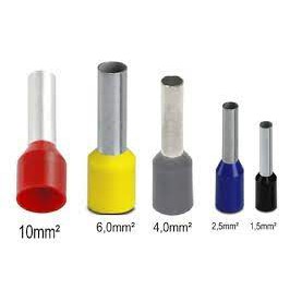 terminal tubular ilhos simples medidas 1,5mm - 2,5mm - 4mm - 6mm - 10mm pacote c/ 100 peças