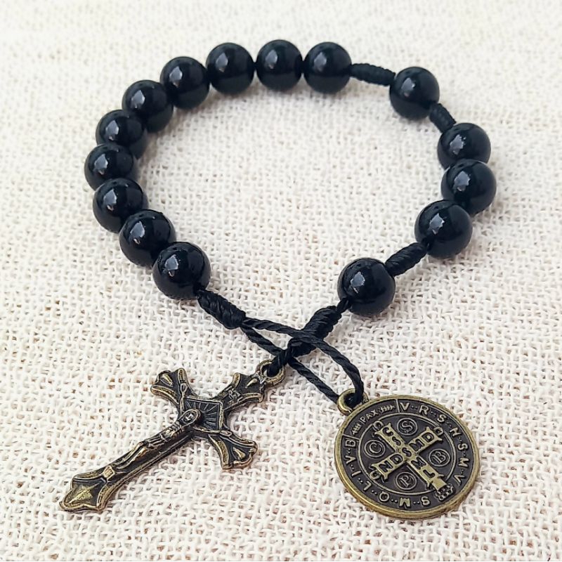 Dezena São Bento Terço Pulseira Pulso Chaveiro Adorno Câmbio De Carro Contas 10mm
