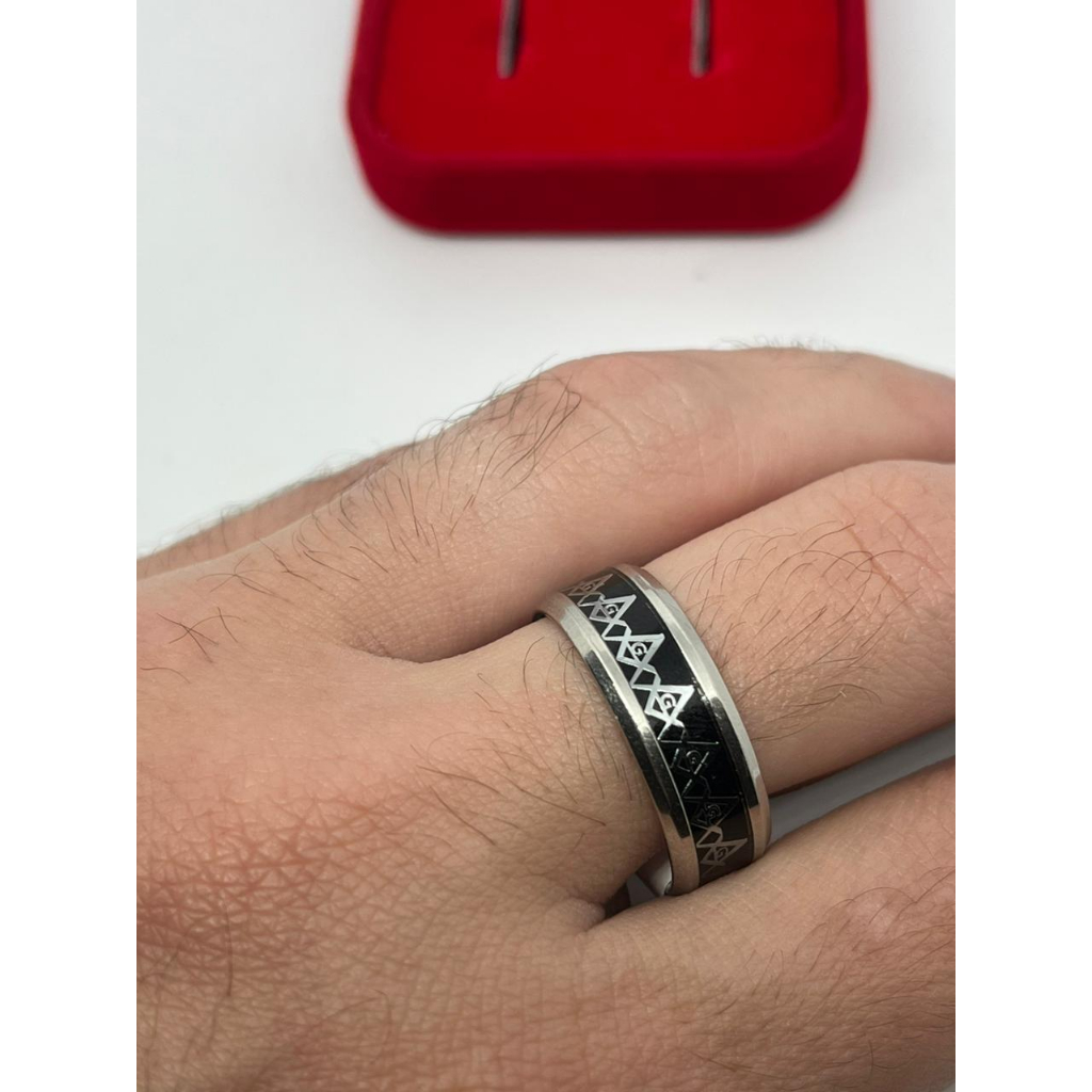 Anel - Aliança Maçonaria Unisex Inox E Preto 8mm 1 unidade
