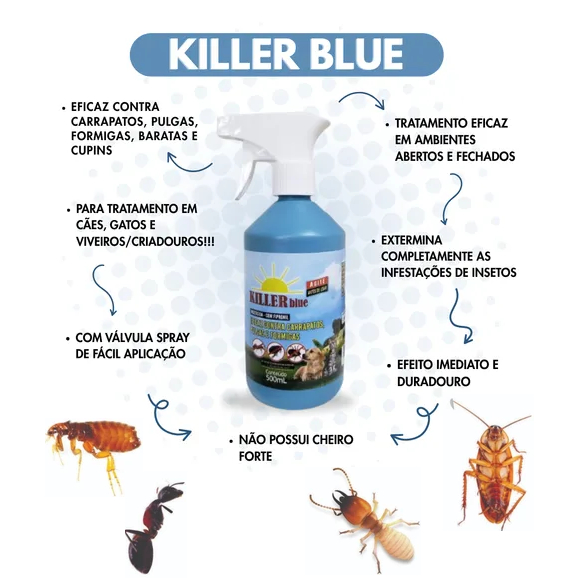 Spray Anti Pulgas Killer Blue 500ml Eficaz Contra Carrapatos Pulgas Original Pronto Uso