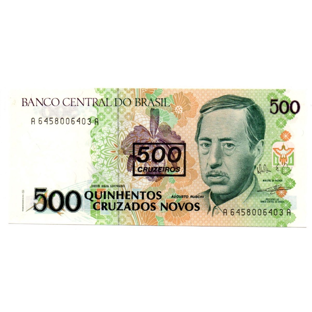 500 Cruzeiros (Carimbo sob 500 Cruzados Novos) Augusto Ruschi C213 Fe Cédula Antiga
