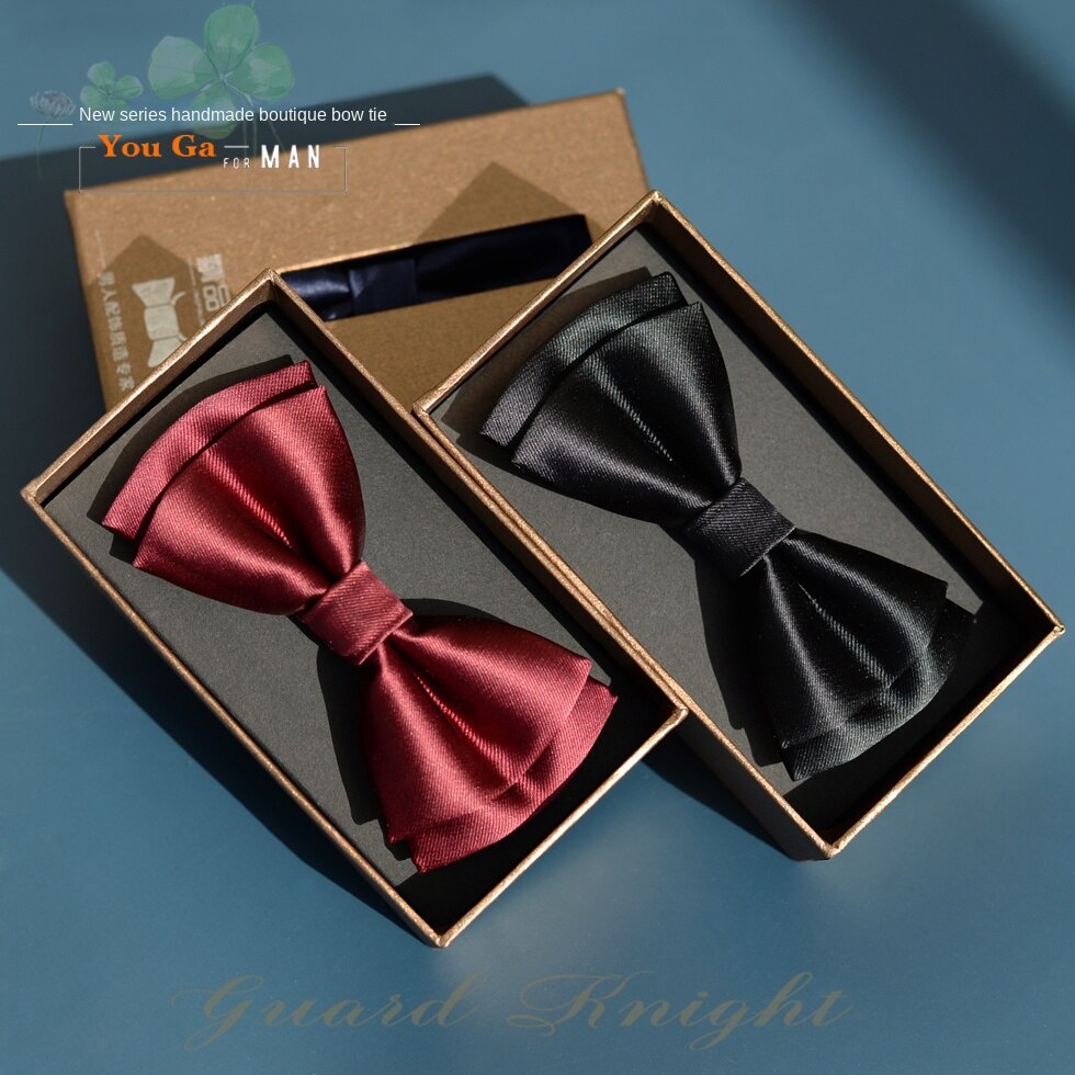 Gravata Borboleta Masculina De Casamento/Noivo Tridimensional Com Camada Dupla/Versão Coreana/Caixa De Presente