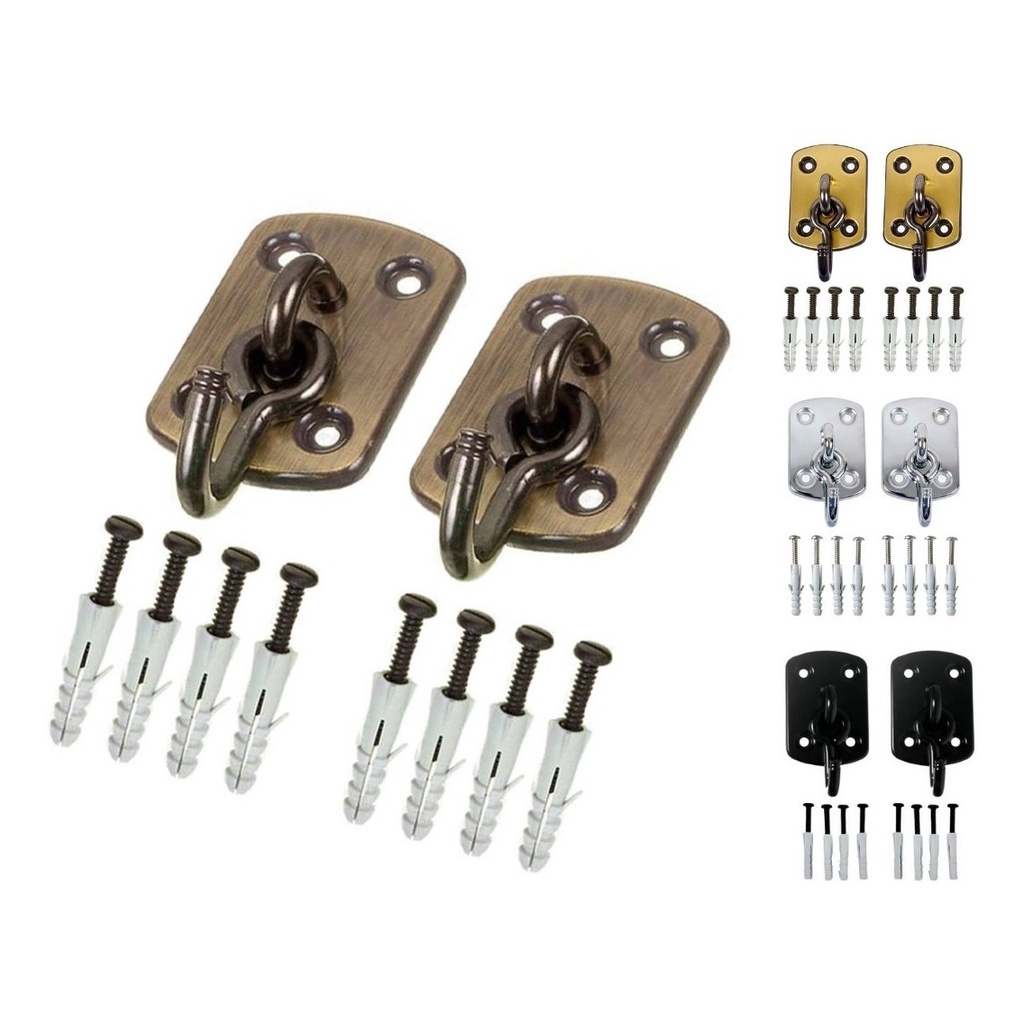 Kit Par de Gancho Armador De Rede De Balanço até 250kg Aço Grosso Reforçado Com 8 Parafusos E Buchas