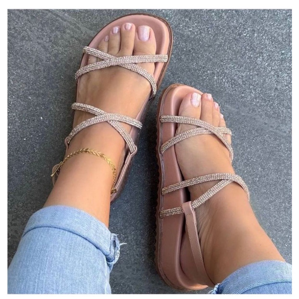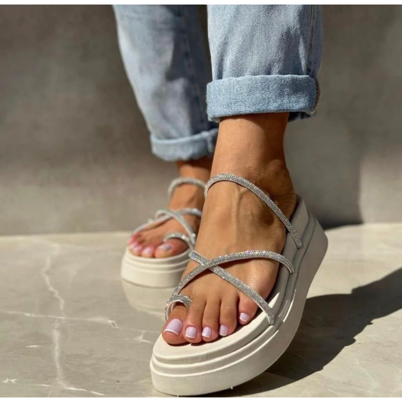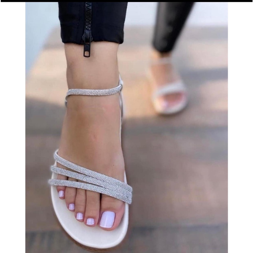Birk rasteira sandália feminina conforto com AMARRAÇÃO de brilho STRASS off white branca