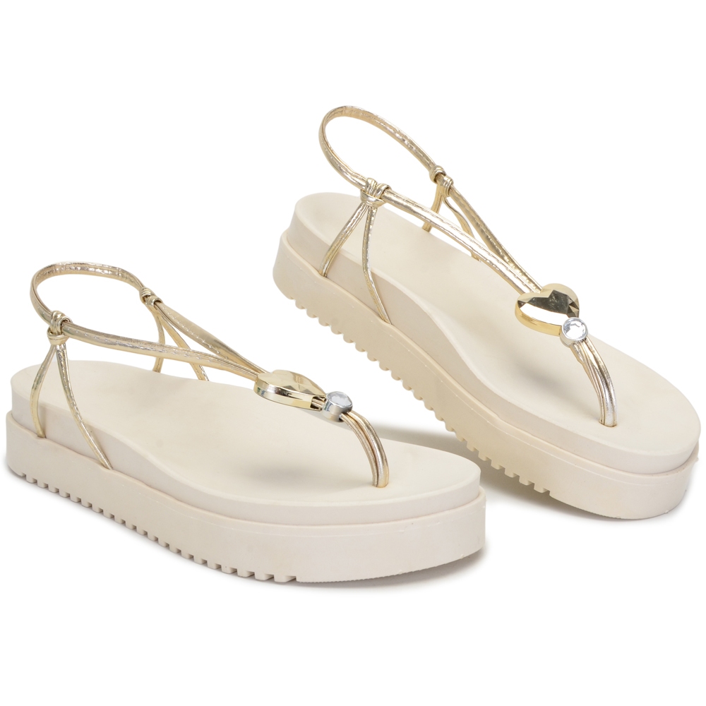 Sandália Rasteira Papete Feminina Flatform de Amarrar color dourada "Aisha" - Sandália feminina de amarrar birk modelo aisha estilo e conforto
