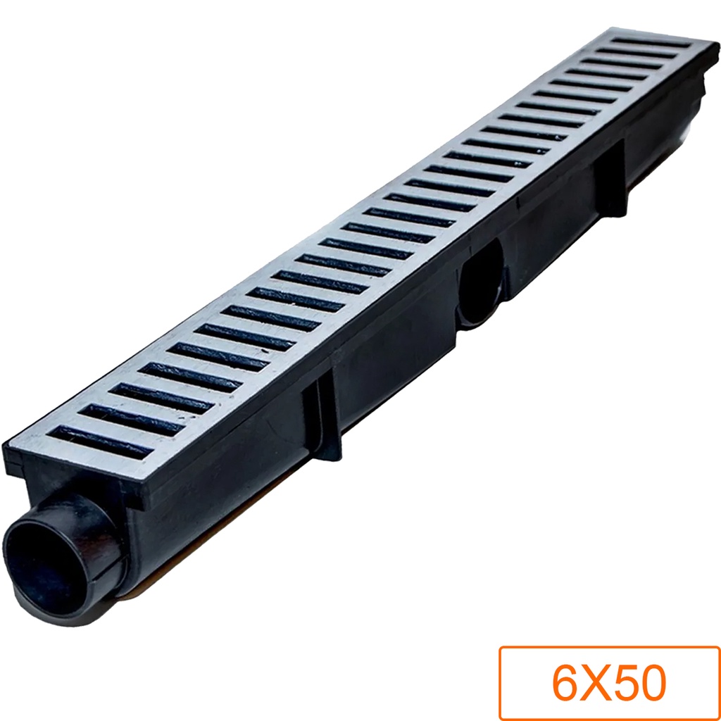 Ralo Linear 6x100cm (2 Peças 6x50cm) Aguenta Passagem de Carros Faz Canto 90º C/ Grelha Em Alumínio Seca Piso Box Piscina Banheiro Jardim Corredor Garagem Quintal Sifonado