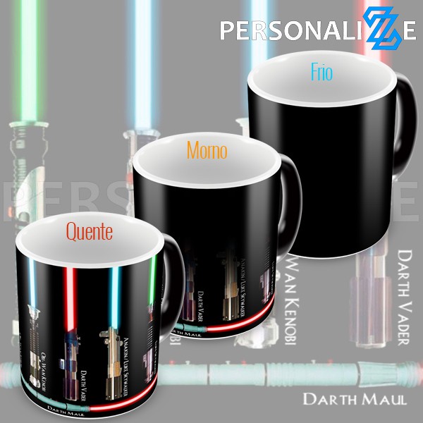 Caneca magica Star wars sabres de luz espadas lazes dos jedis e siths