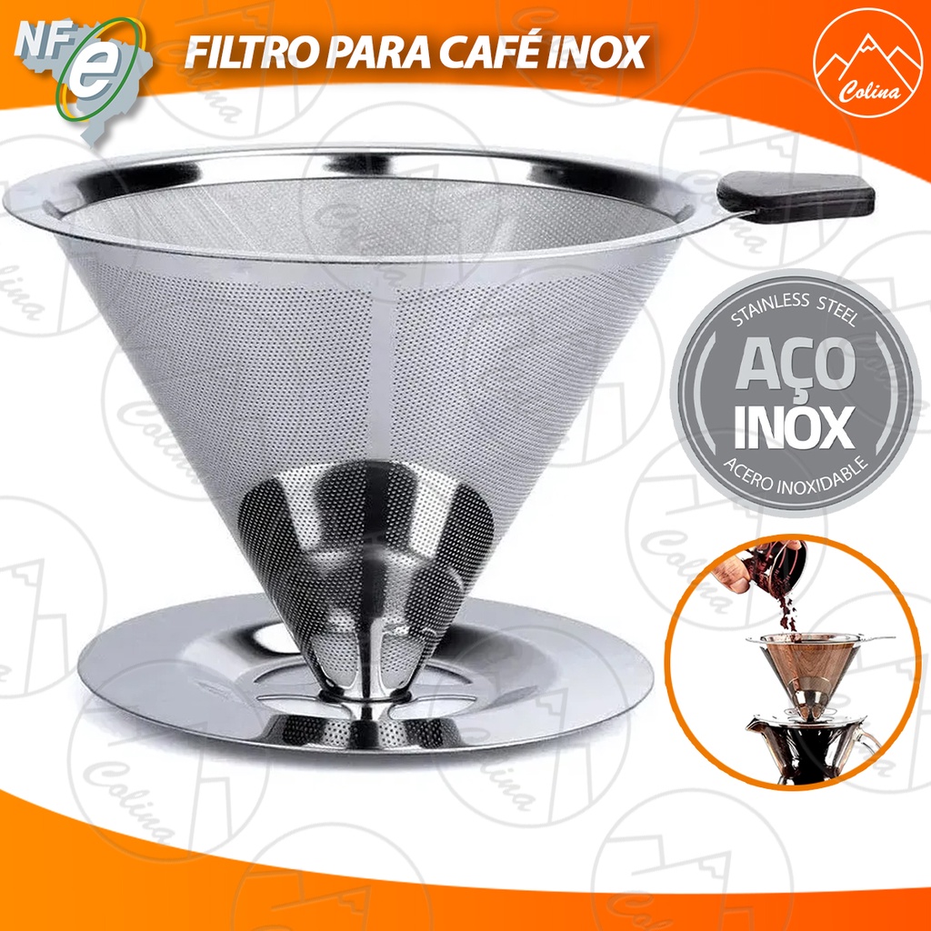 Filtro Coador de Café Inox 103 Grande Lavável Reutilizável Pour Over Premium Não Utiliza Filtro