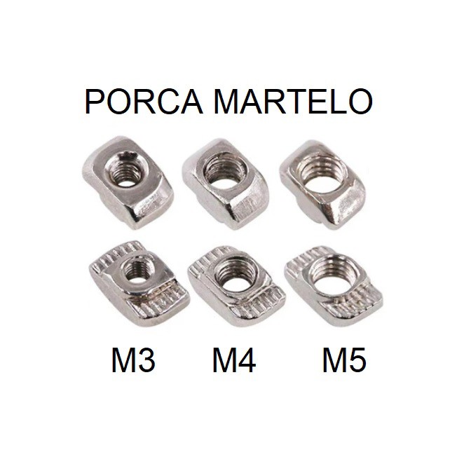 Porca T Martelo M4, M5 e M6 P/ Perfil Estrutural em Alumínio T-Slot 40 e 50 canal 8