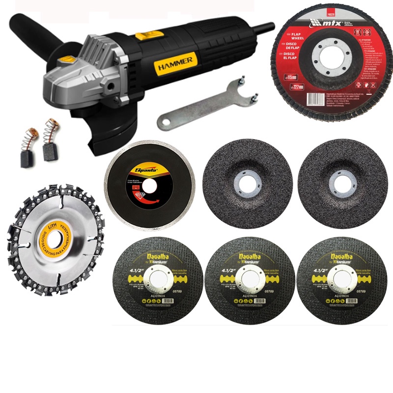 Lixadeira Esmerilhadeira Angular Hammer com Acessório 110V ou 220V 710W com Chave para Trocar Disco