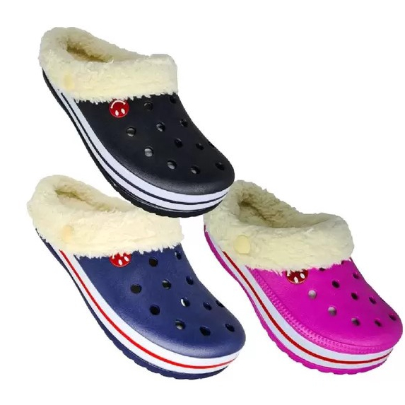 Chinelo Sapato Pantufa Babuche Forrado Preto De Inverno Pelúcia Pelinho Chumbo Similar Croc Com Pêlo Leve e Macio
