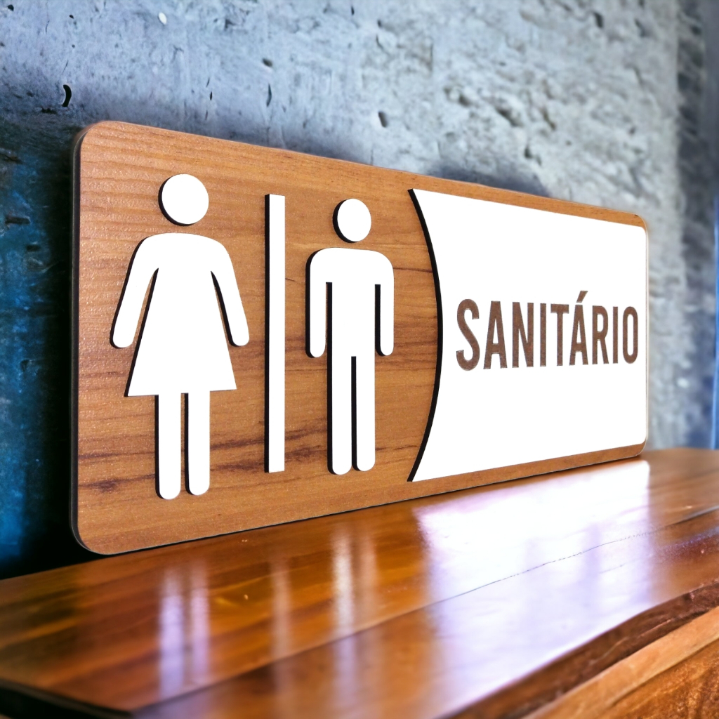 Placa De Sinalização | Sanitário - MDF 30x13cm