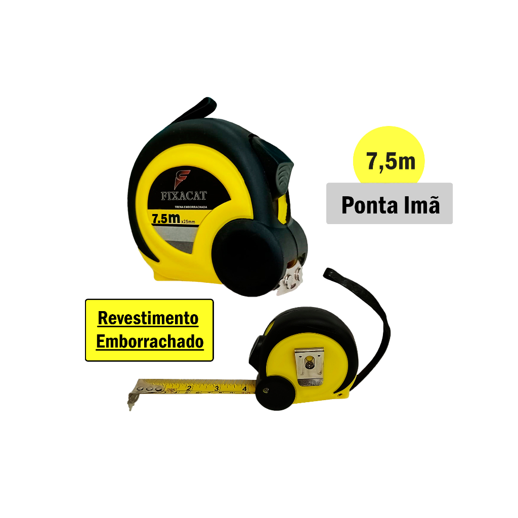 Trena Manual De Aço Emborrachada 7,5m X 25 mm Ponta Imã