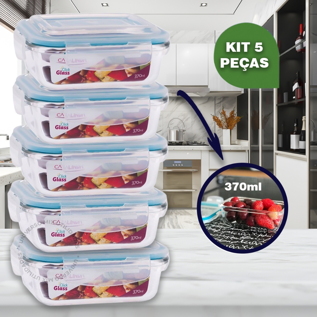 Kit 5 Potes Vidro Hermético Mantimentos Marmita 370ml Premium