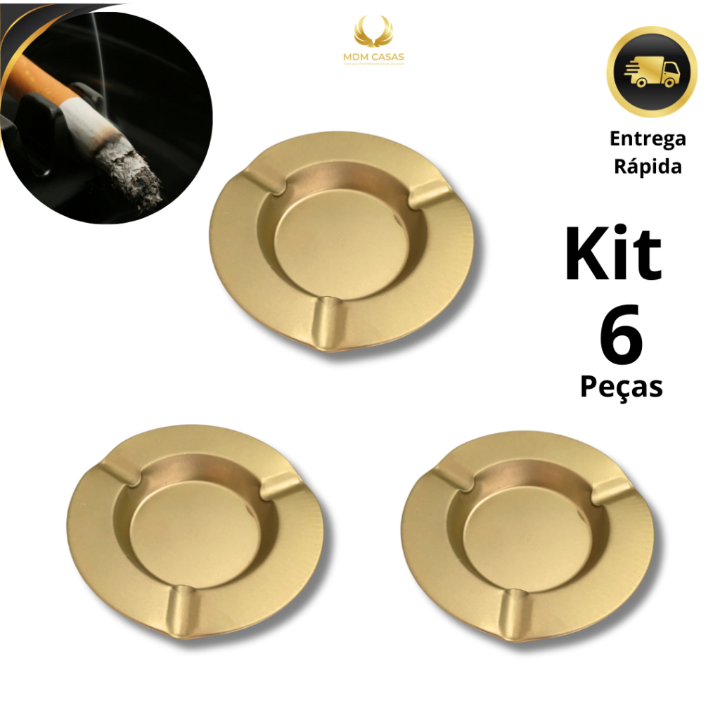 Kit Cinzeiro Redondo Metal Dourado Coletor de Residuos Resistente Lavável para Bares Lanchonetes