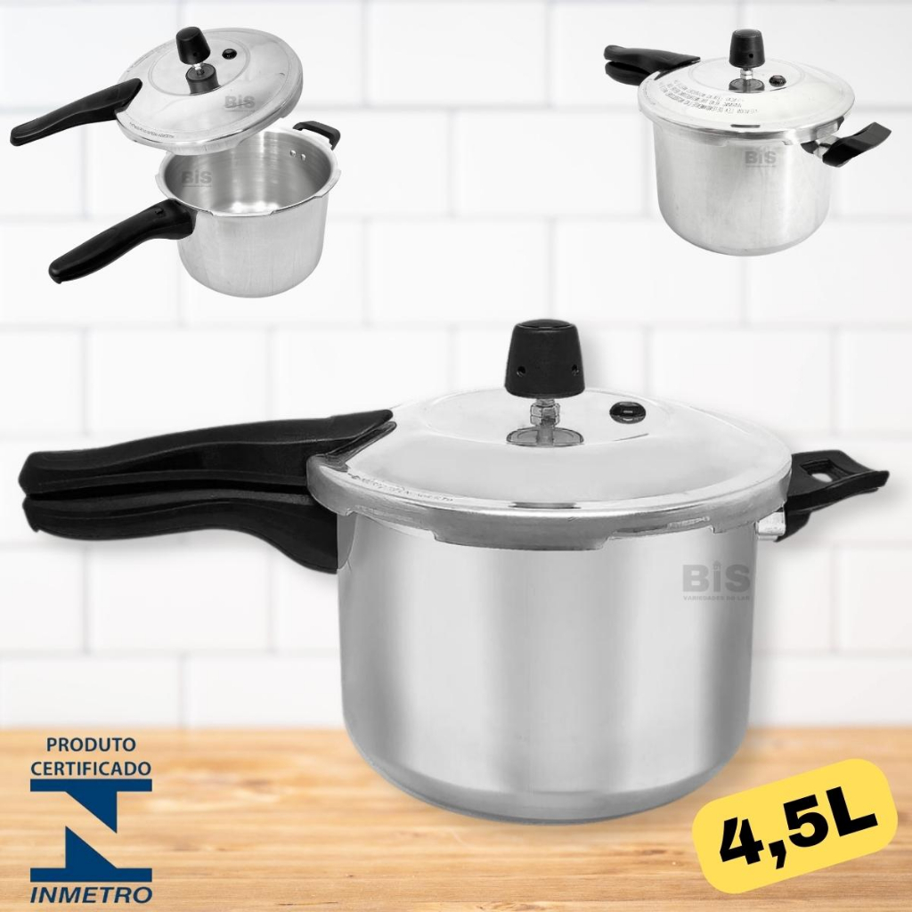Panela De Pressão Fechamento Externo 4,5 Litros Cozimento Rápido Em Alumínio Certificado Inmetro