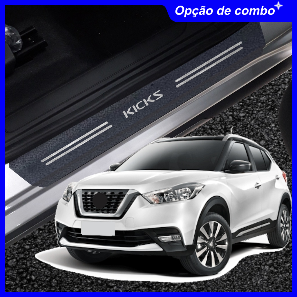 Kit 8 Peças Soleira Speed Protetor Porta Nissan Kicks 2016 2017 2018 2019 2020 2021 2022 56,5cm Preto Adesiva Anti Risco Premium Autocolante Fácil Aplicação Proteção Dianteira e Traseira