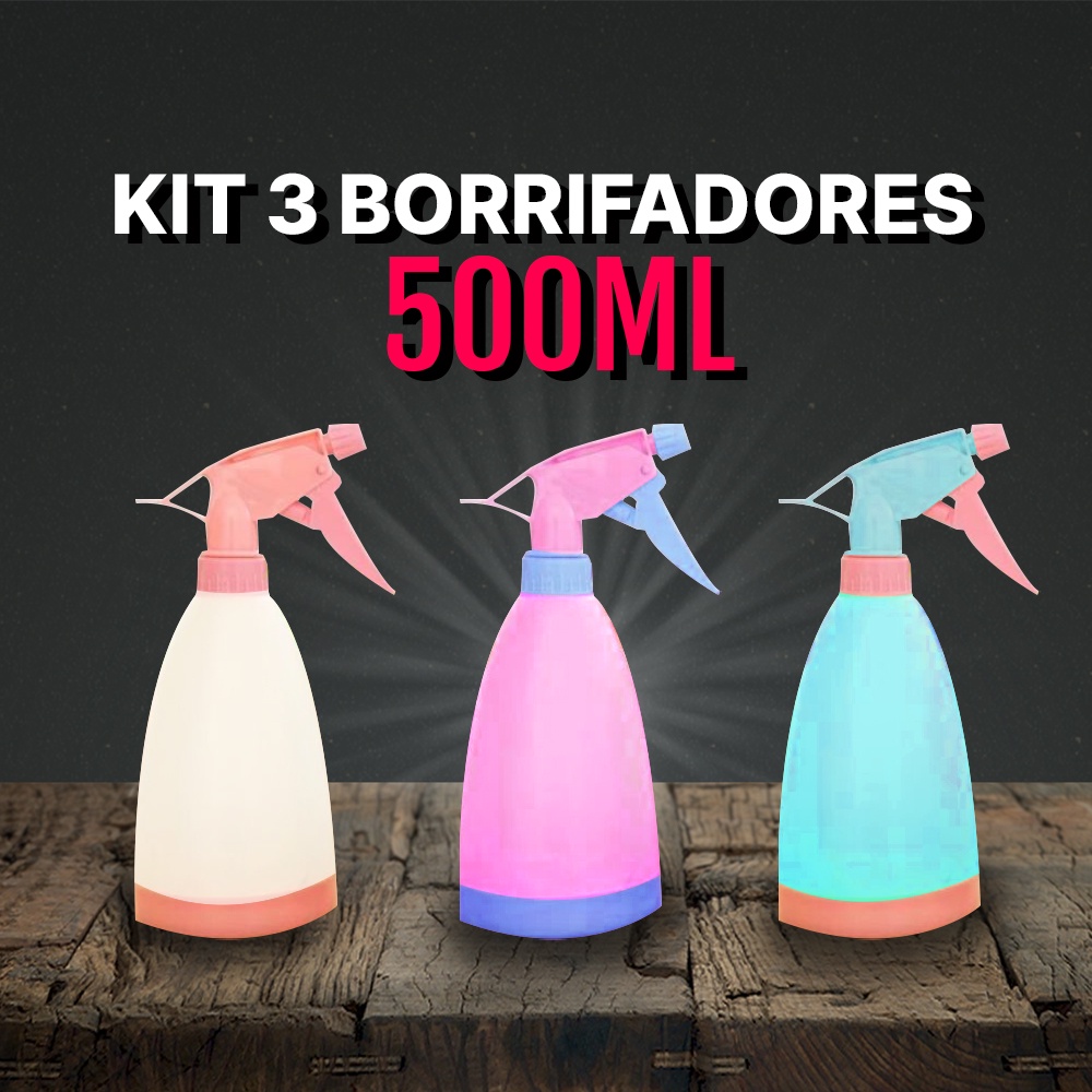 Kit 3 Borrifadores Spray 500ml/Cores: Rosa, Azul, Branco