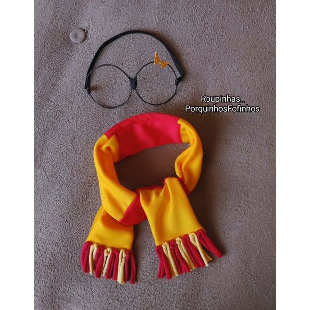 Roupa pet fantasia Harry Potter + cachecol + óculos completa para cães e gatos