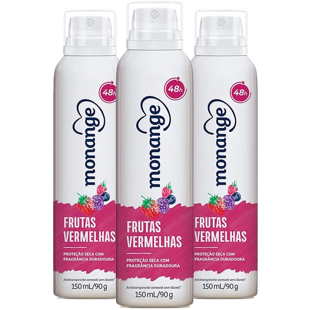 Kit 3 Desodorantes Aerosol Monange Frutas Vermelhas 150ml Cada