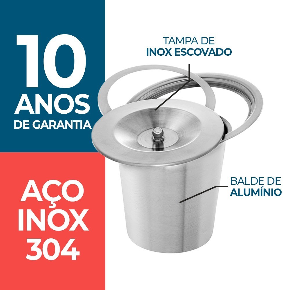Lixeira Pia Cozinha 5l Embutir No Granito Bancada em Inox Não Enferruja 5 Litros Cesto em Aluminio