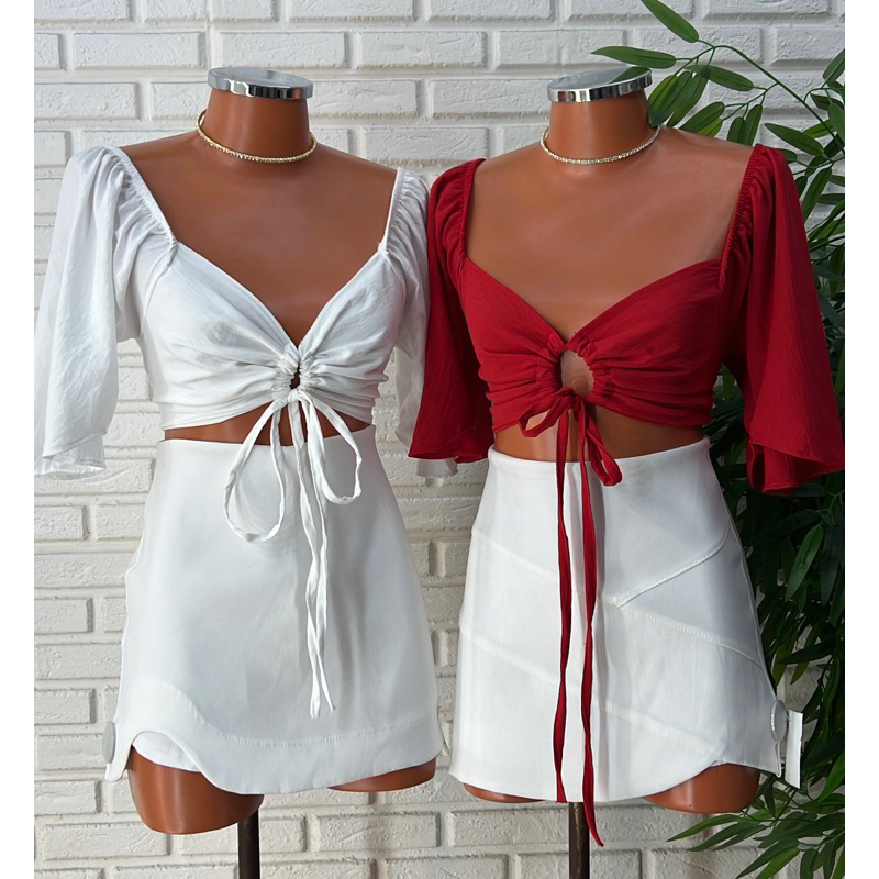 Cropped Saint-Tropez Aberto nas Costas Semi Nua Com Mangas Curta Blogueira Moda Feminina Verão 2022 REF: 07
