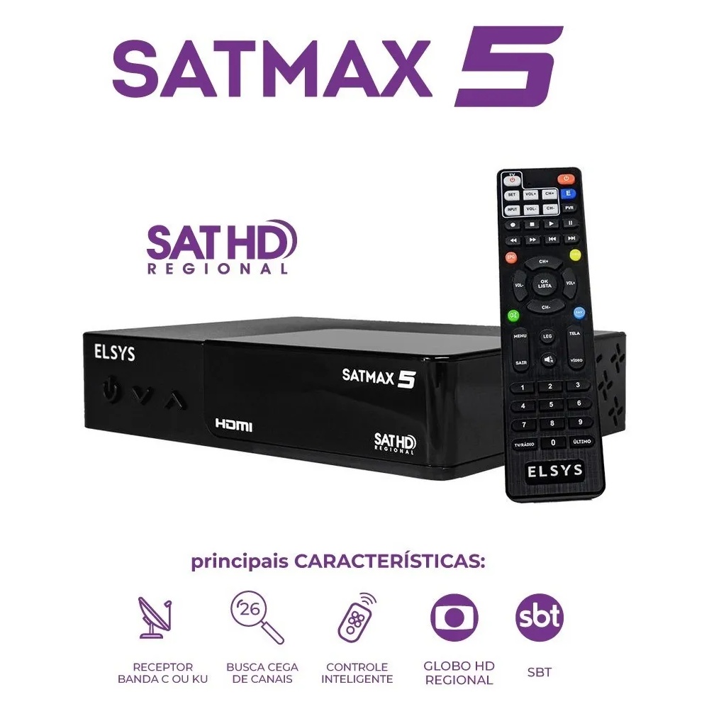 Receptor Digital Full Hd Satmax 6 Banda C ou Ku Canal Livre HDMI Elsys para Antena Parabólica